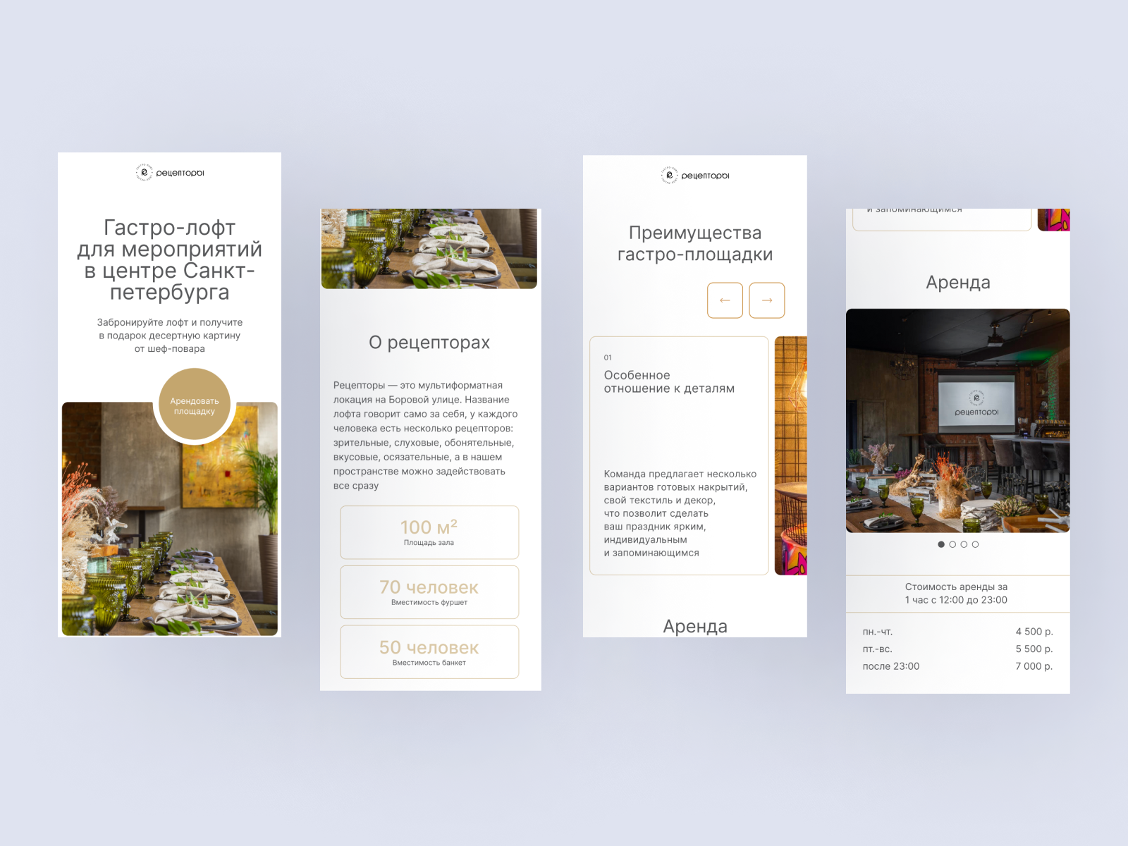 Заказчик шеф-повар и владелец гастро-лофта в Санкт-Петербурге. Необходимо создать дизайн-концепцию учитывая фирменный стиль площадки. Разработать продающую структуру учитывая потребность в продаже продукта — страница готовилась для рекламной кампании.