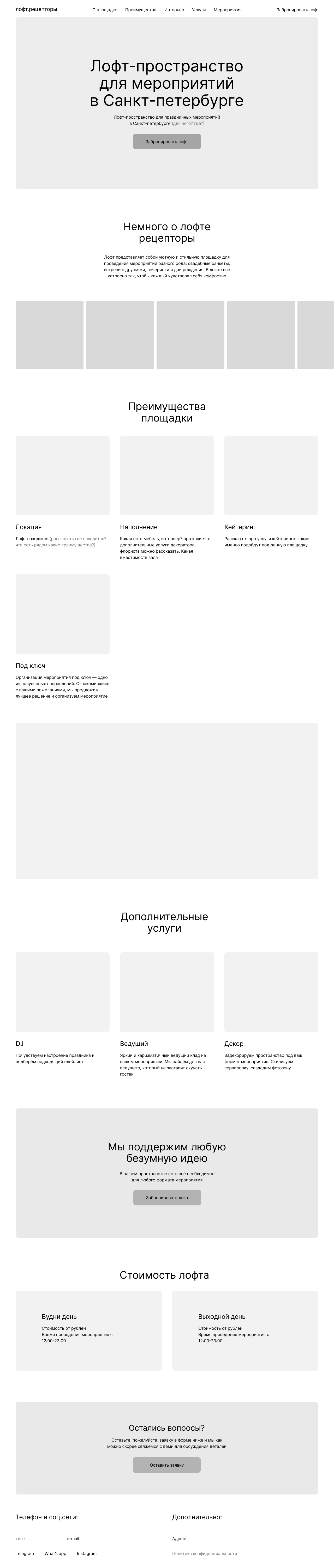 В первую неделю существования сайт принёс клиенту более 10 целевых заявок на бронирования лофта без рекламы